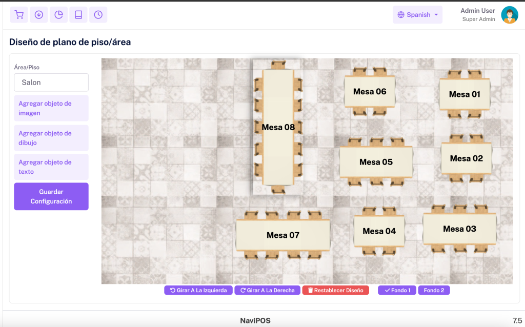 Podrás crear un mapa con las mesas reales de tu establecimiento, asi como su distribución en el Salón